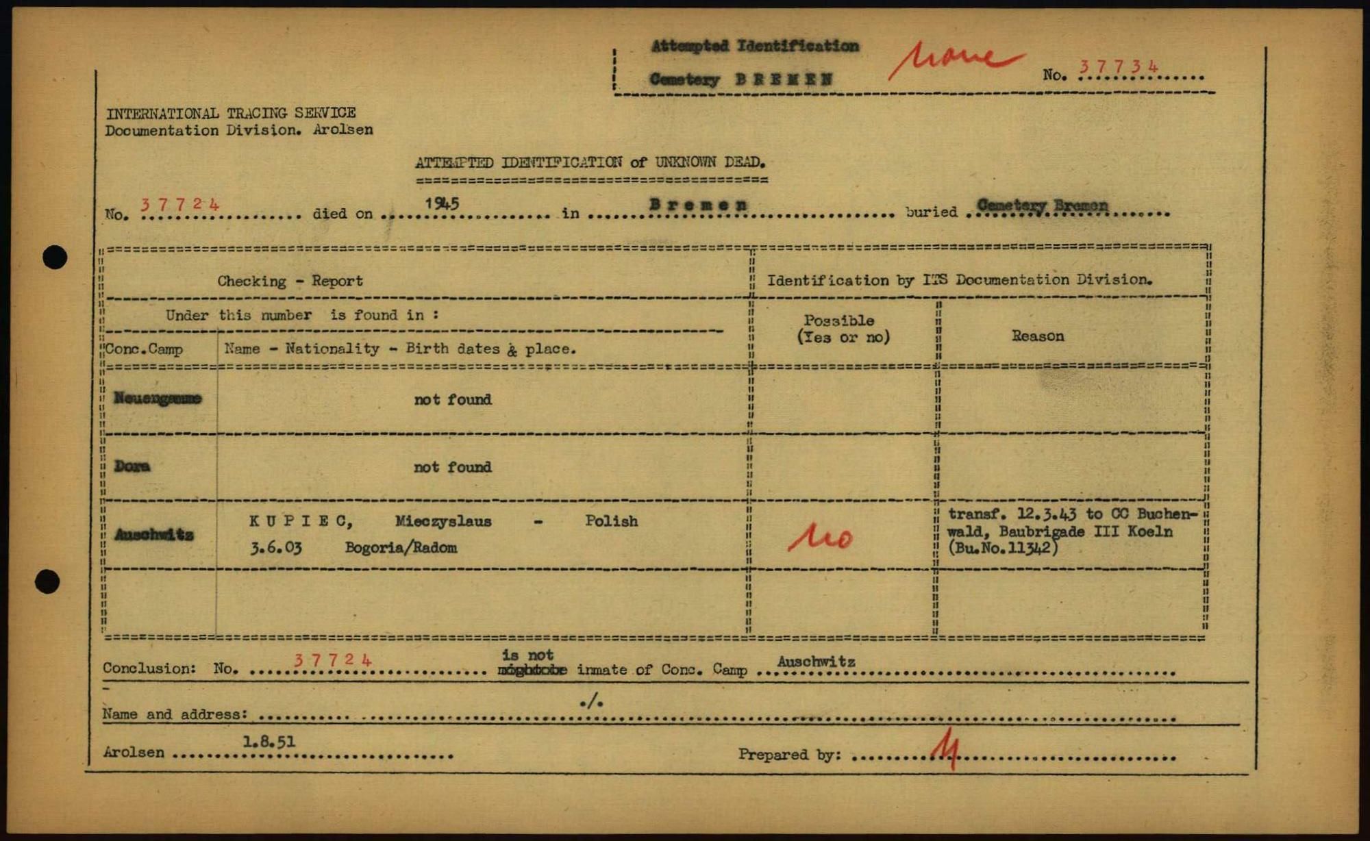 Einen Kommentar schreiben →Attempted Identification of Unknown Dead - Cemeteries: Ergebnisse der Identifizierung... 0147 (84613147)