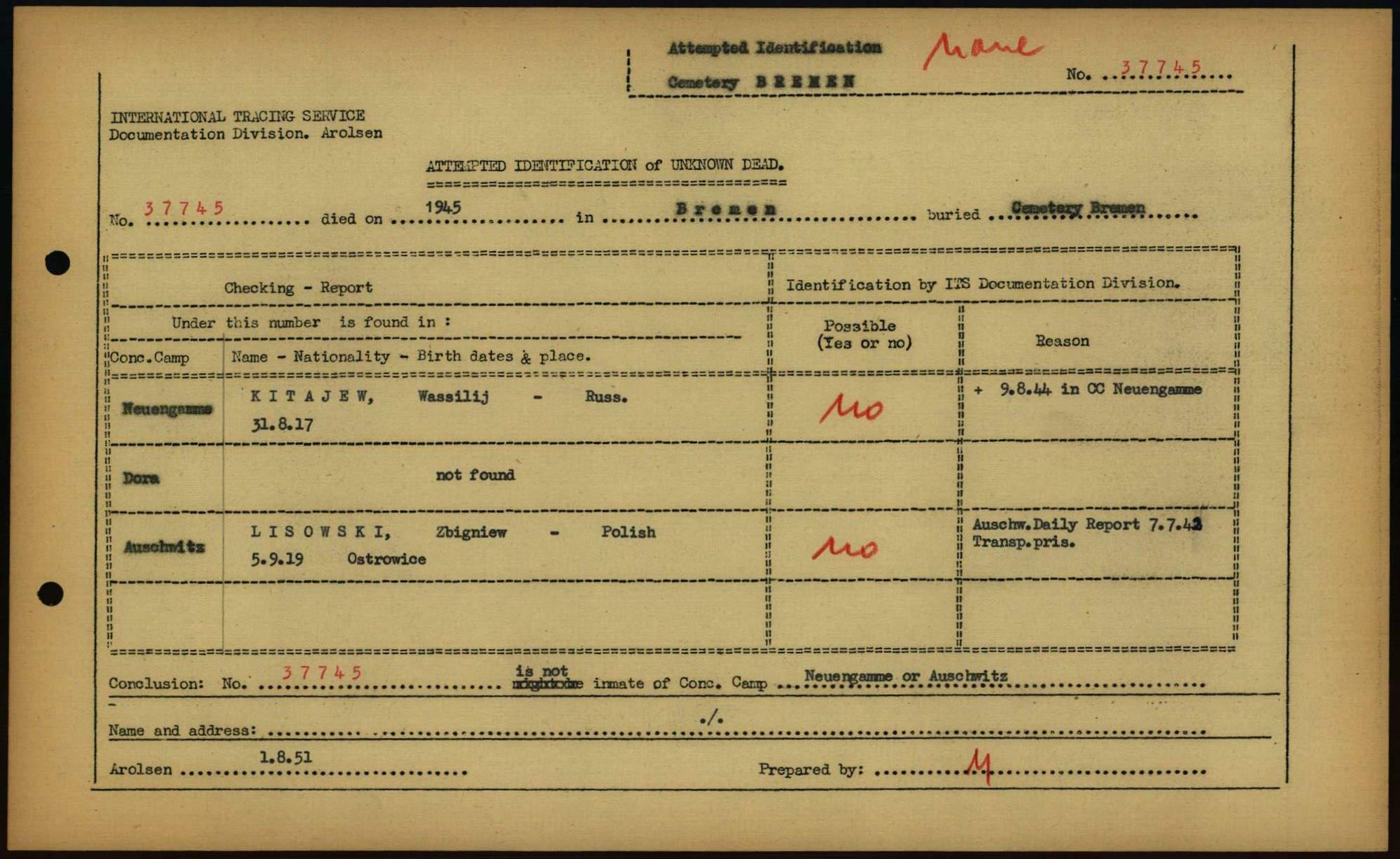 Einen Kommentar schreiben →Attempted Identification of Unknown Dead - Cemeteries: Ergebnisse der Identifizierung... 0150 (84613150)