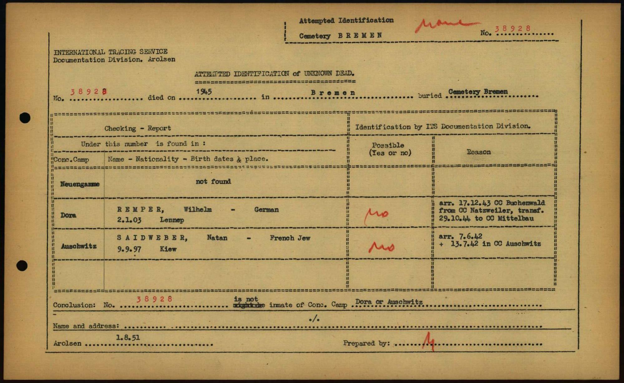 Einen Kommentar schreiben →Attempted Identification of Unknown Dead - Cemeteries: Ergebnisse der Identifizierung... 0167 (84613167)