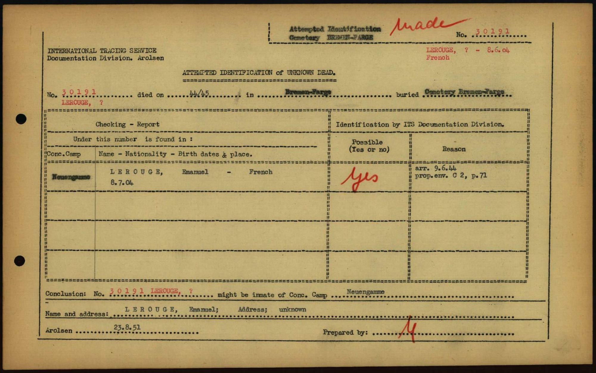 Einen Kommentar schreiben →Attempted Identification of Unknown Dead - Cemeteries: Ergebnisse der Identifizierung... 0100 (84613337)