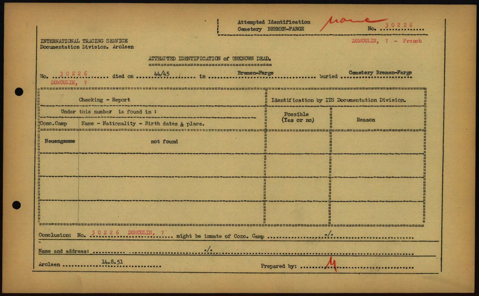 Einen Kommentar schreiben →Attempted Identification of Unknown Dead - Cemeteries: Ergebnisse der Identifizierung... 0106 (84613343)