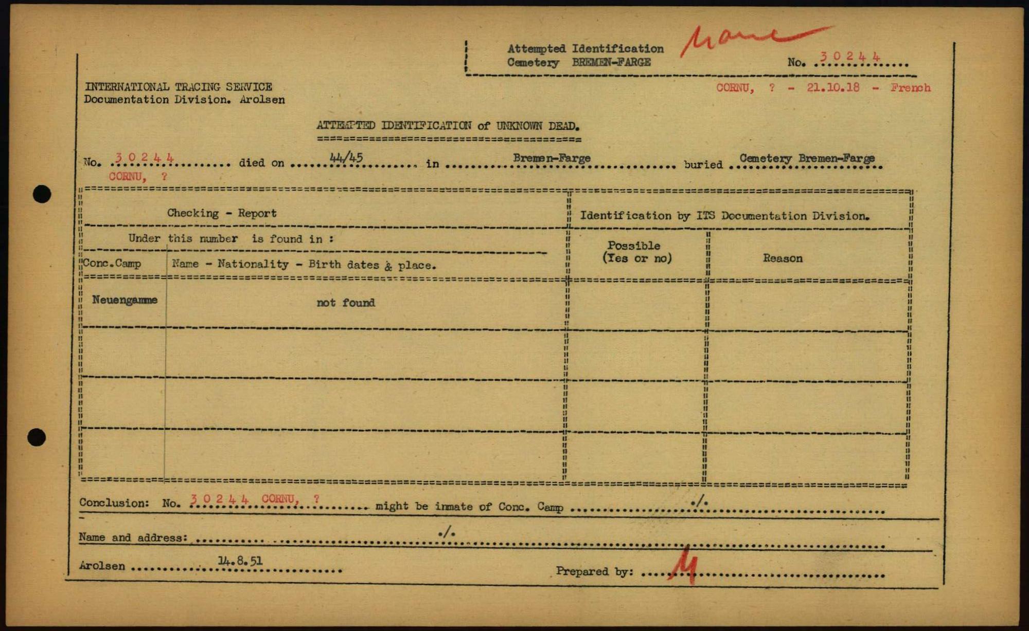 Einen Kommentar schreiben →Attempted Identification of Unknown Dead - Cemeteries: Ergebnisse der Identifizierung... 0109 (84613346)