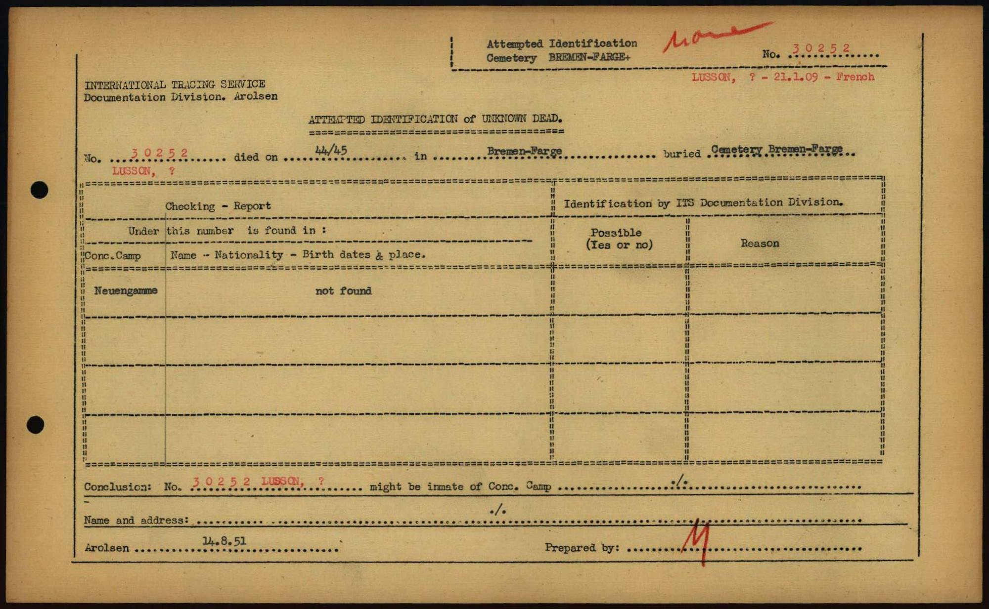 Einen Kommentar schreiben →Attempted Identification of Unknown Dead - Cemeteries: Ergebnisse der Identifizierung... 0112 (84613349)