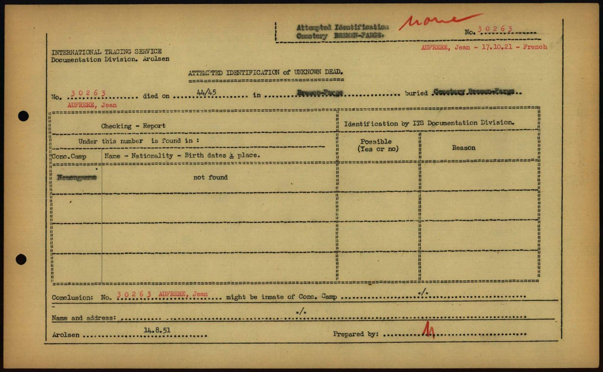 Einen Kommentar schreiben →Attempted Identification of Unknown Dead - Cemeteries: Ergebnisse der Identifizierung... 0114 (84613351)