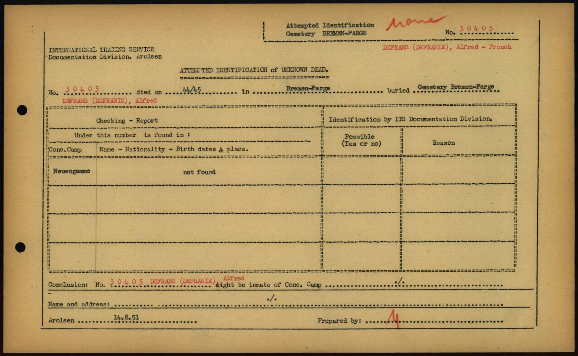 Einen Kommentar schreiben →Attempted Identification of Unknown Dead - Cemeteries: Ergebnisse der Identifizierung... 0125 (84613362)