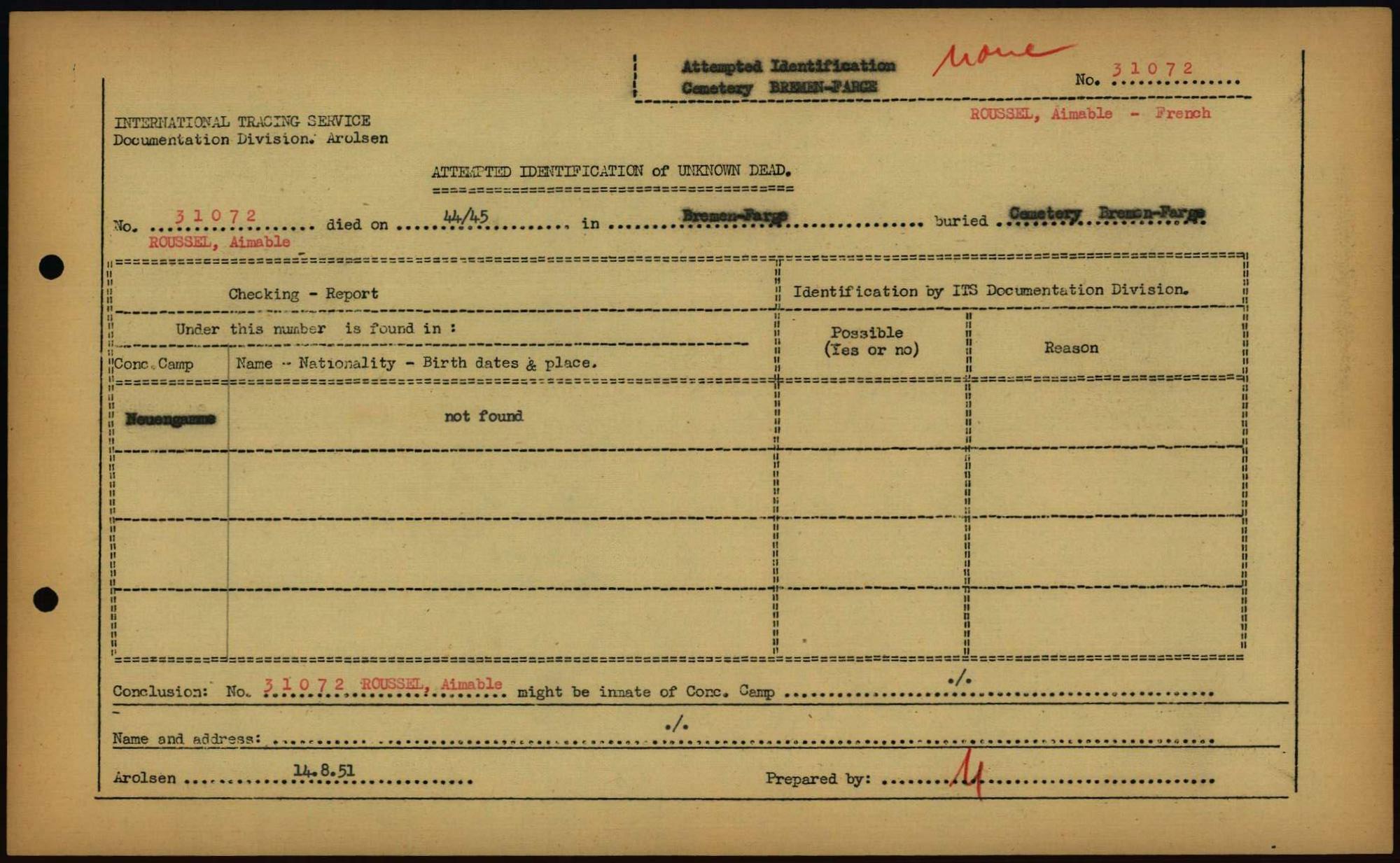 Einen Kommentar schreiben →Attempted Identification of Unknown Dead - Cemeteries: Ergebnisse der Identifizierung... 0154 (84613391)