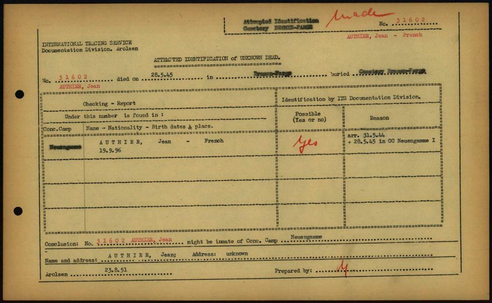 Einen Kommentar schreiben →Attempted Identification of Unknown Dead - Cemeteries: Ergebnisse der Identifizierung... 0174 (84613411)