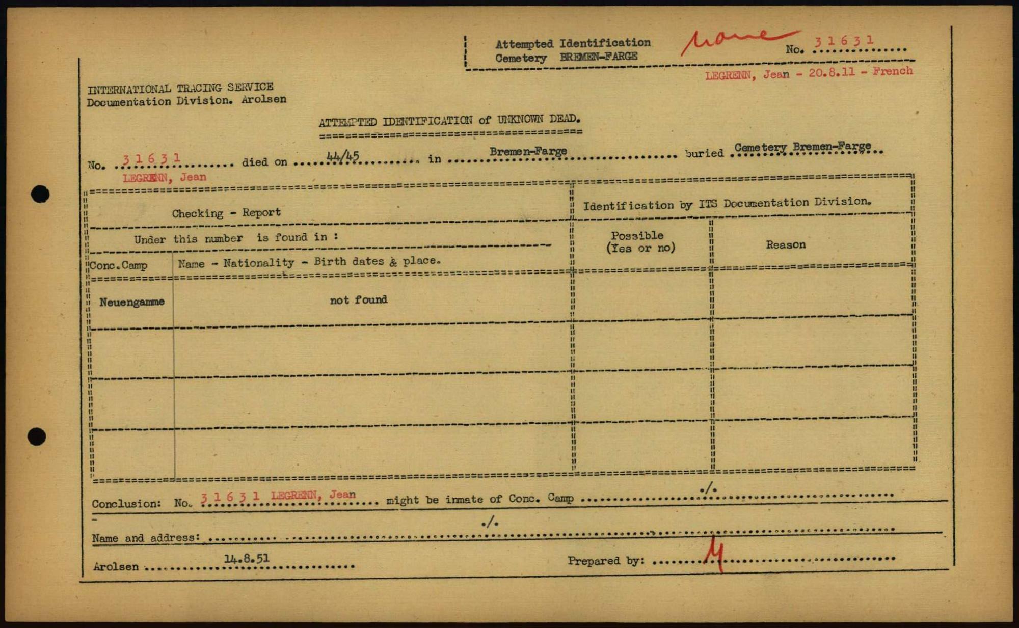 Einen Kommentar schreiben →Attempted Identification of Unknown Dead - Cemeteries: Ergebnisse der Identifizierung... 0175 (84613412)