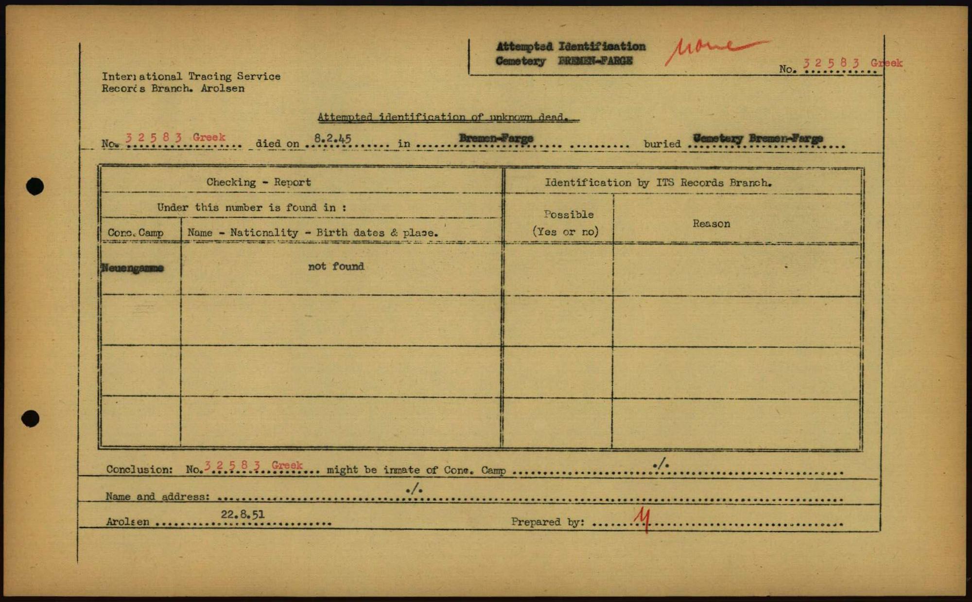 Einen Kommentar schreiben →Attempted Identification of Unknown Dead - Cemeteries: Ergebnisse der Identifizierung... 0198 (84613435)
