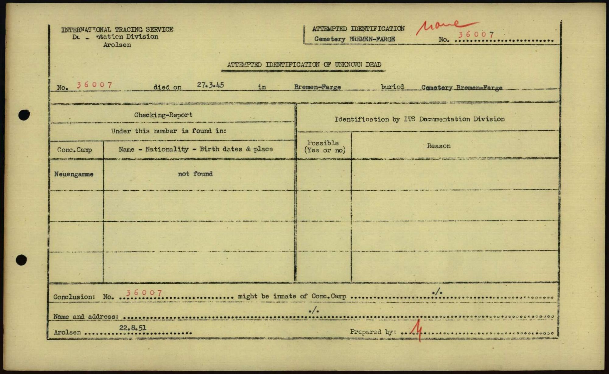 Einen Kommentar schreiben →Attempted Identification of Unknown Dead - Cemeteries: Ergebnisse der Identifizierung... 0209 (84613446)