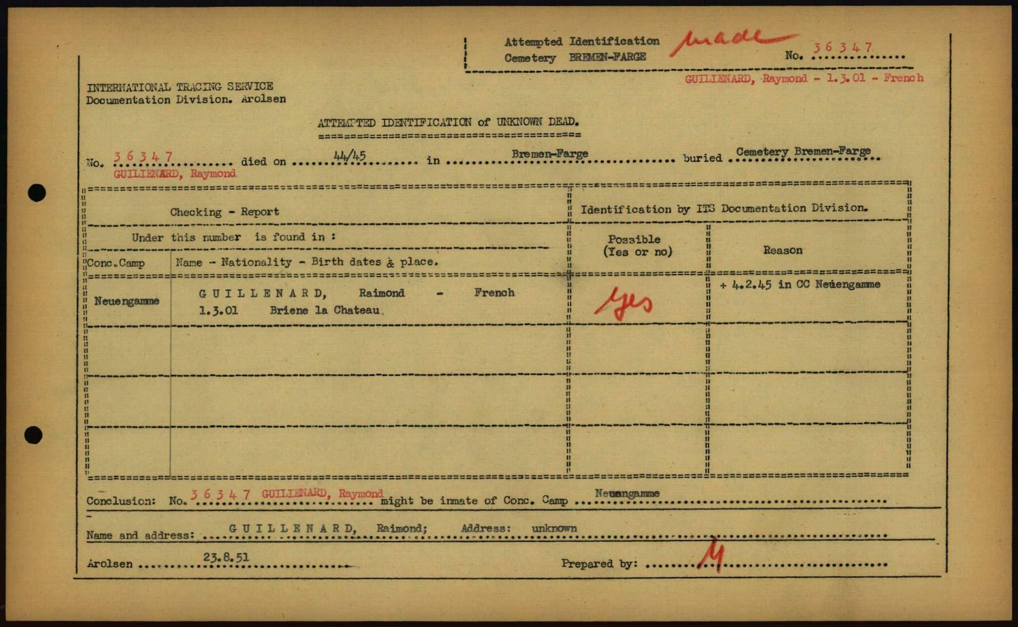 Einen Kommentar schreiben →Attempted Identification of Unknown Dead - Cemeteries: Ergebnisse der Identifizierung... 0221 (84613458)