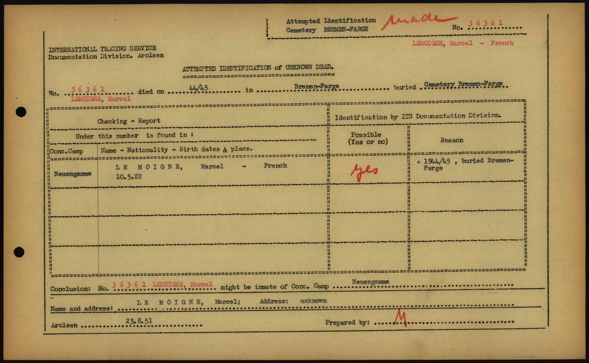 Einen Kommentar schreiben →Attempted Identification of Unknown Dead - Cemeteries: Ergebnisse der Identifizierung... 0226 (84613463)