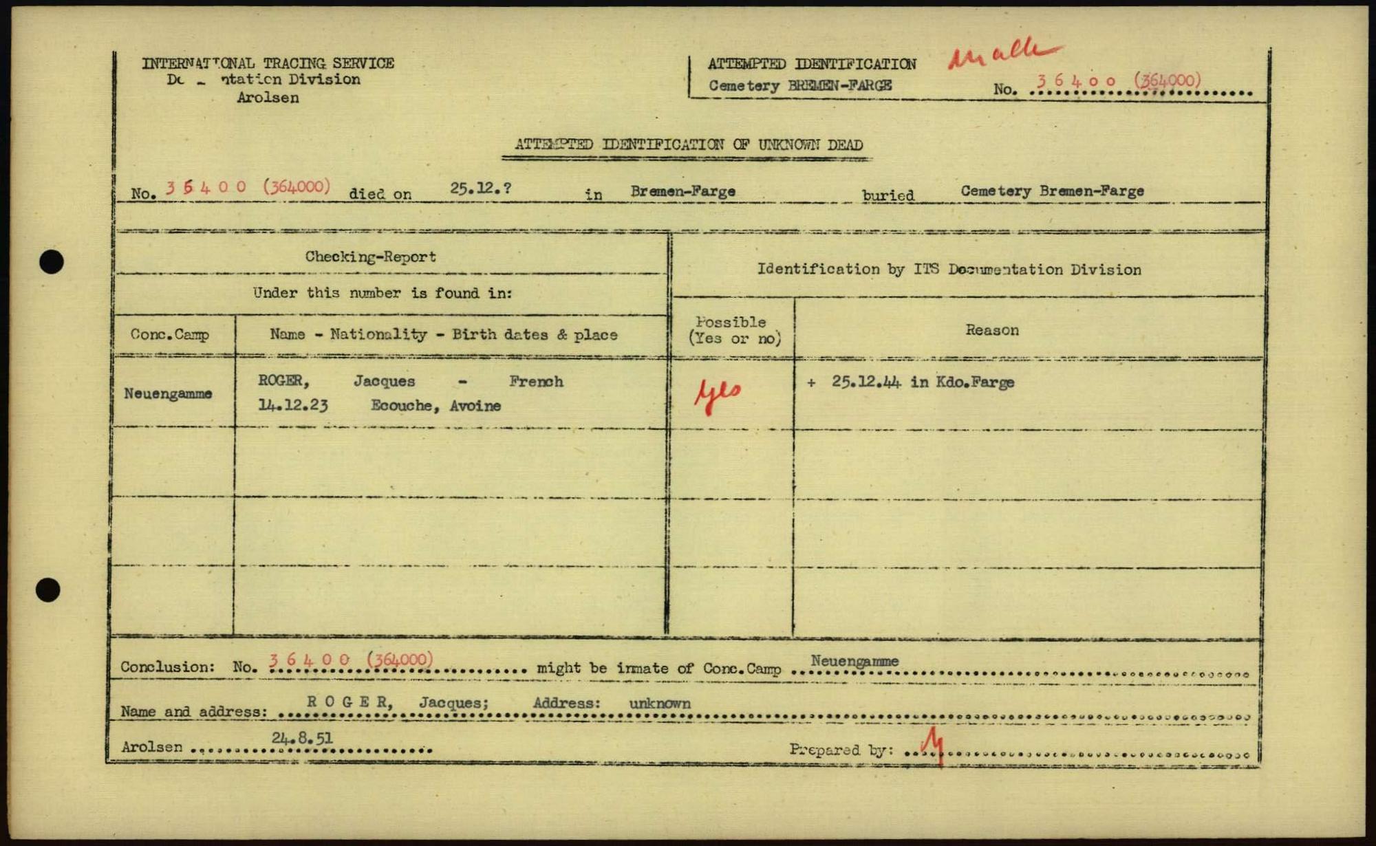 Einen Kommentar schreiben →Attempted Identification of Unknown Dead - Cemeteries: Ergebnisse der Identifizierung... 0231 (84613468)