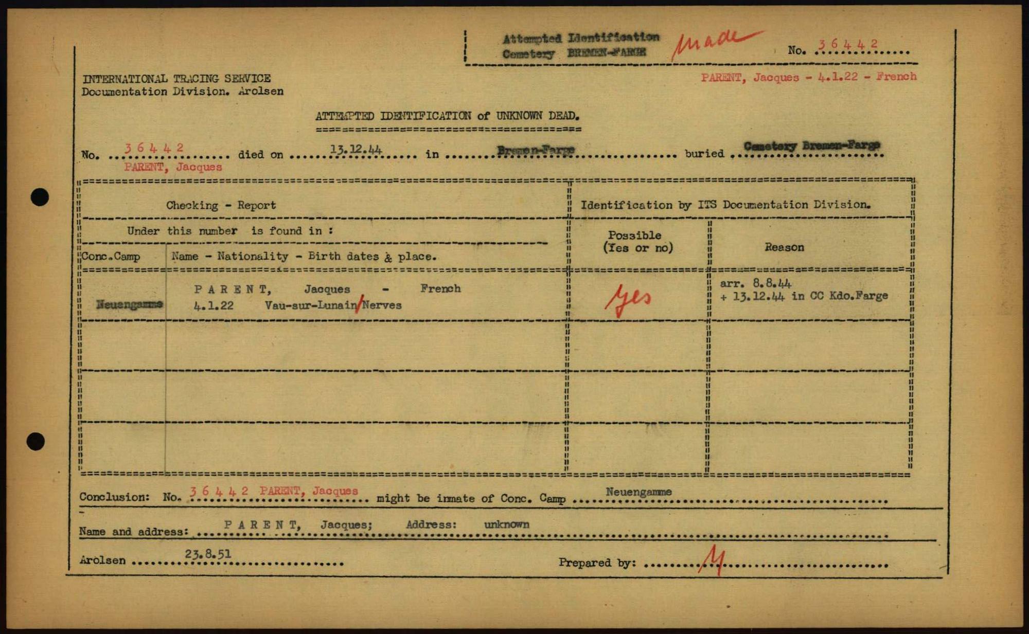 Einen Kommentar schreiben →Attempted Identification of Unknown Dead - Cemeteries: Ergebnisse der Identifizierung... 0240 (84613477)