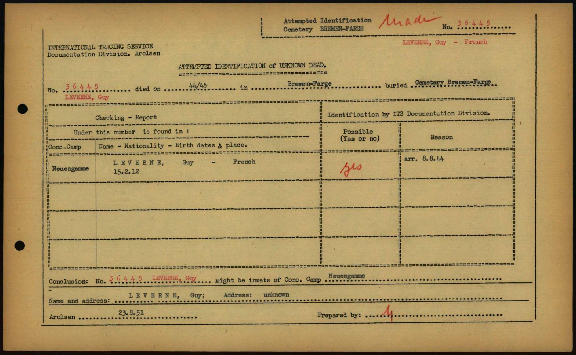 Einen Kommentar schreiben →Attempted Identification of Unknown Dead - Cemeteries: Ergebnisse der Identifizierung... 0242 (84613479)