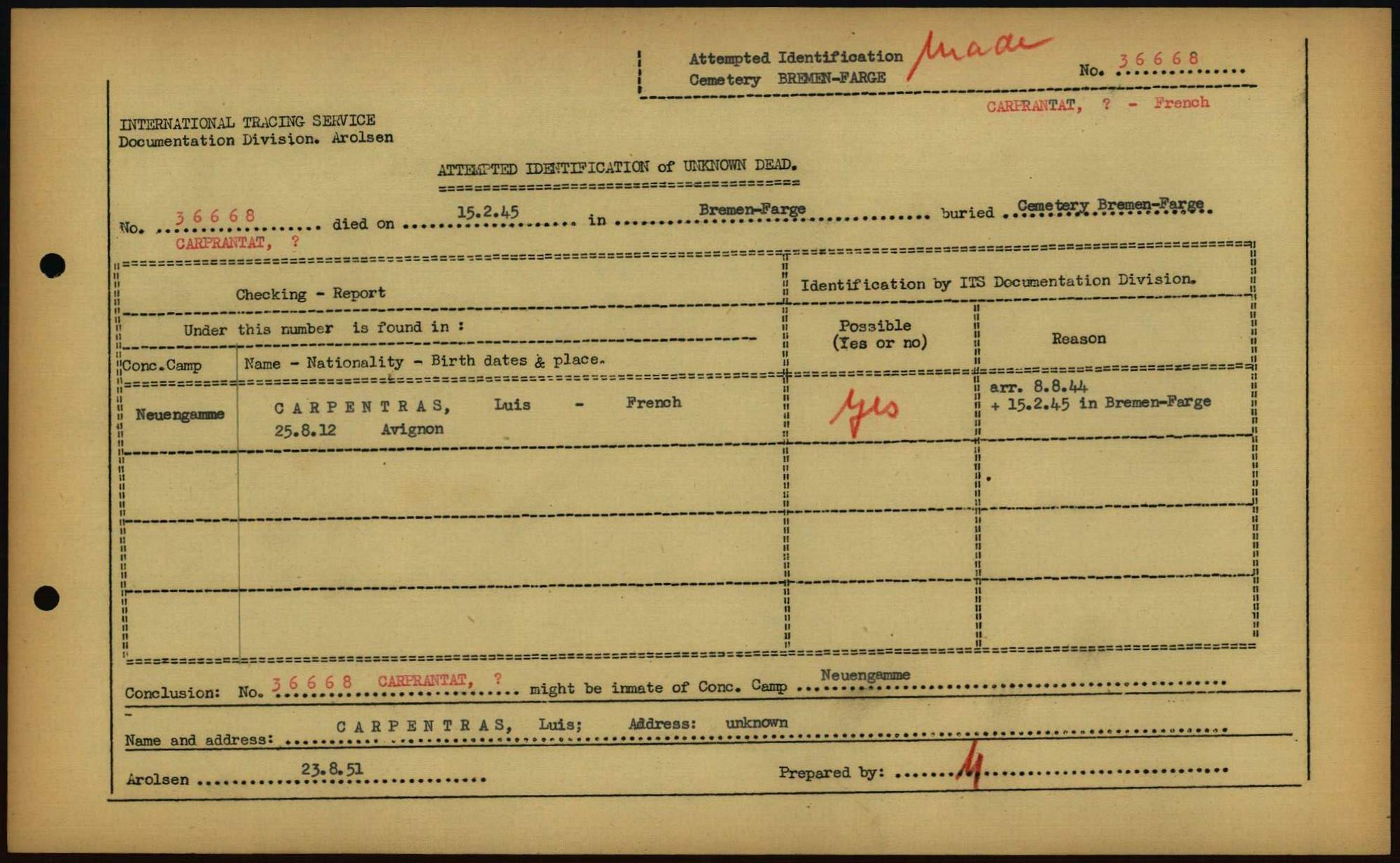 Einen Kommentar schreiben →Attempted Identification of Unknown Dead - Cemeteries: Ergebnisse der Identifizierung... 0274 (84613511)