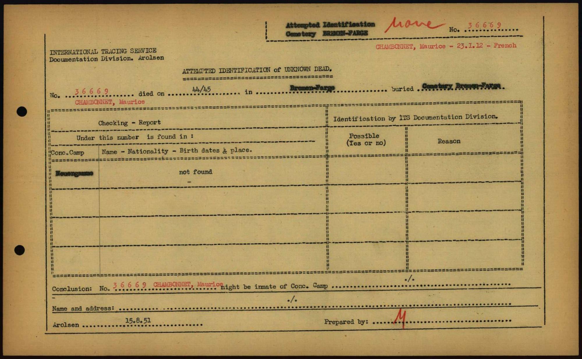 Einen Kommentar schreiben →Attempted Identification of Unknown Dead - Cemeteries: Ergebnisse der Identifizierung... 0275 (84613512)