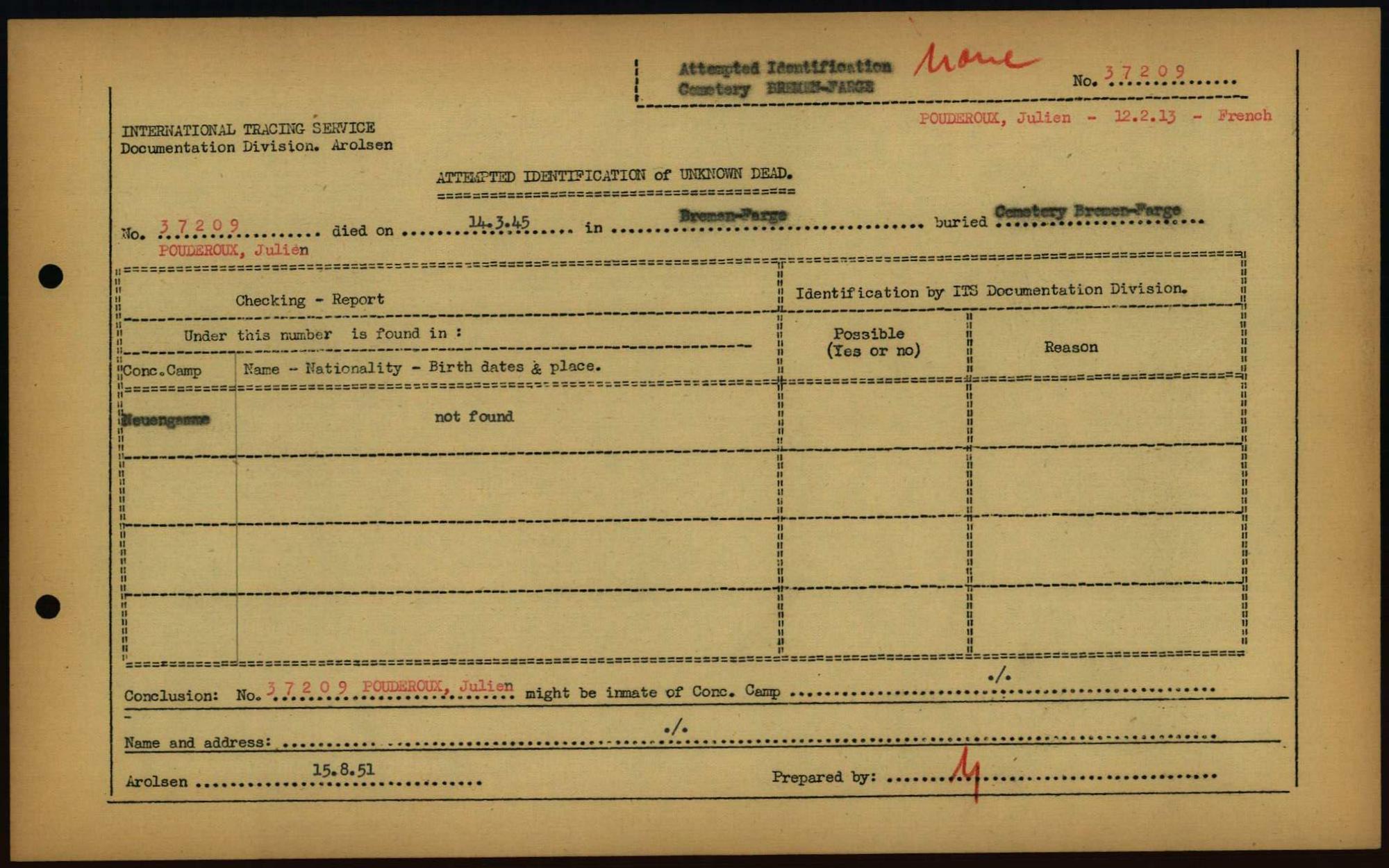 Einen Kommentar schreiben →Attempted Identification of Unknown Dead - Cemeteries: Ergebnisse der Identifizierung... 0060 (84613647)