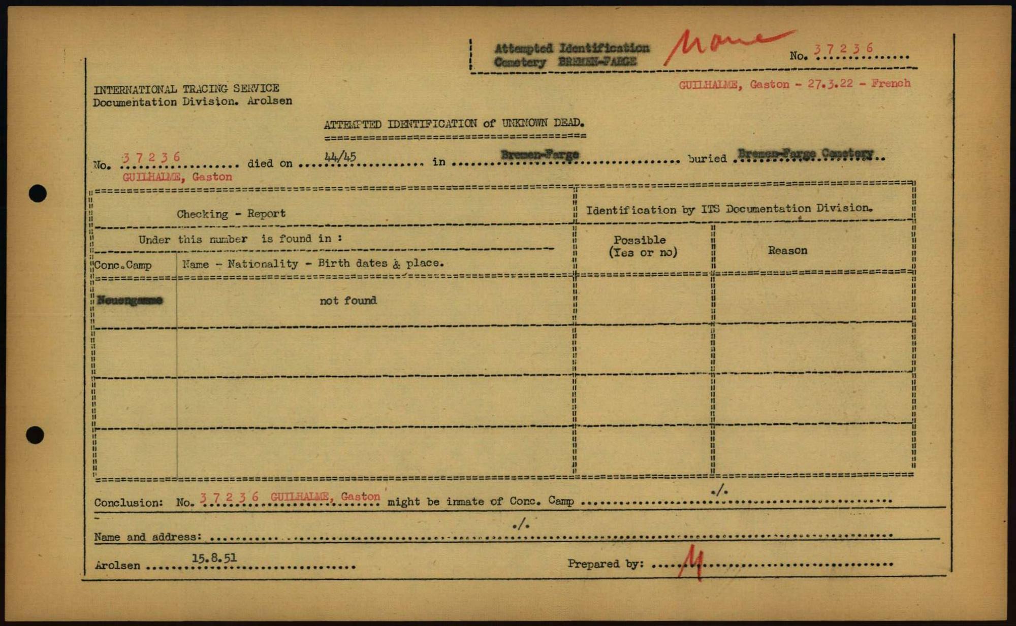 Einen Kommentar schreiben →Attempted Identification of Unknown Dead - Cemeteries: Ergebnisse der Identifizierung... 0066 (84613653)