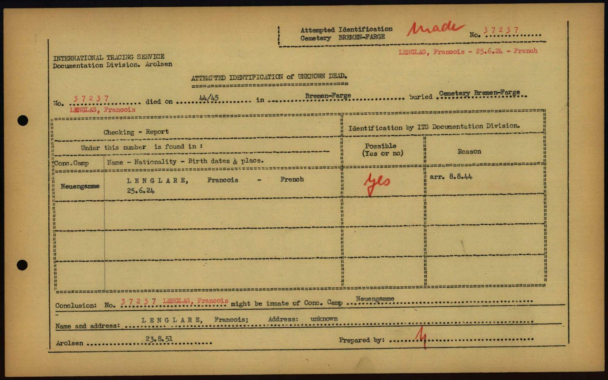 Einen Kommentar schreiben →Attempted Identification of Unknown Dead - Cemeteries: Ergebnisse der Identifizierung... 0067 (84613654)