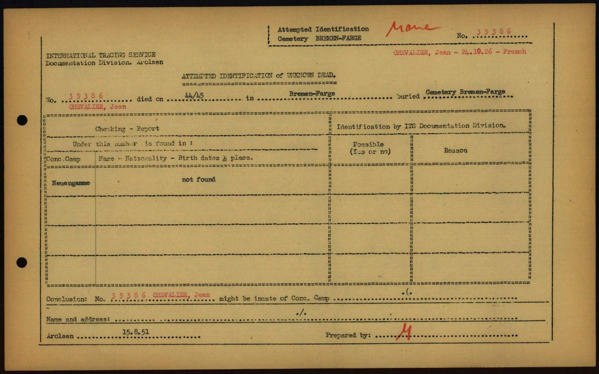 Einen Kommentar schreiben →Attempted Identification of Unknown Dead - Cemeteries: Ergebnisse der Identifizierung... 0145 (84613732)
