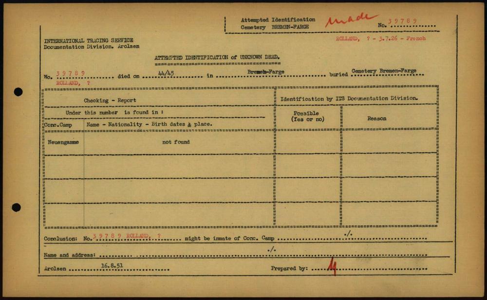 Einen Kommentar schreiben →Attempted Identification of Unknown Dead - Cemeteries: Ergebnisse der Identifizierung... 0181 (84613768)