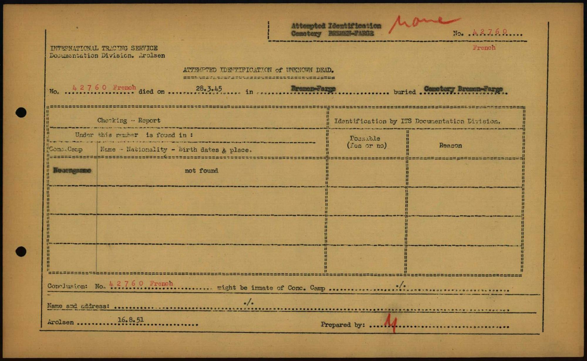 Einen Kommentar schreiben →Attempted Identification of Unknown Dead - Cemeteries: Ergebnisse der Identifizierung... 0203 (84613790)