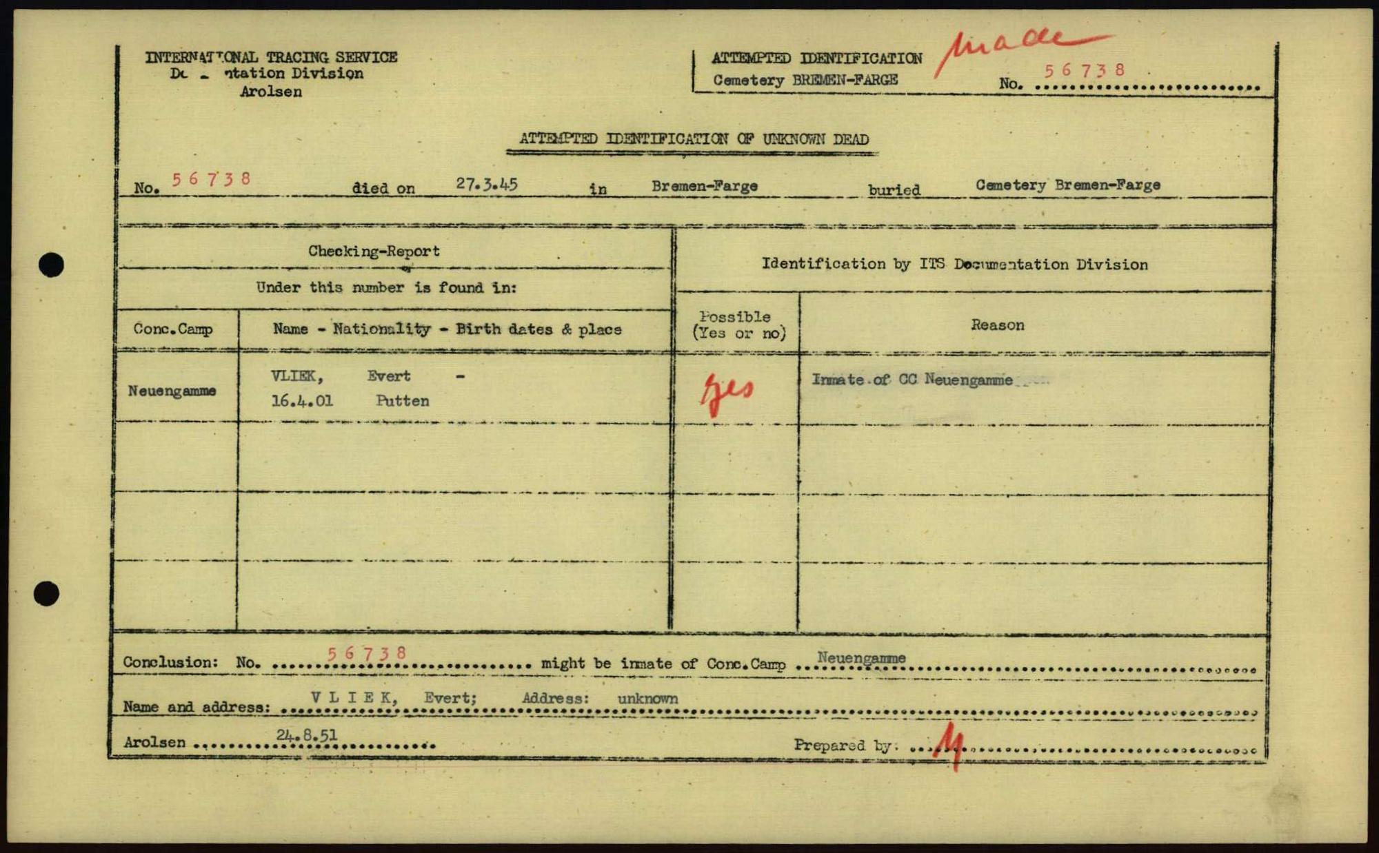 Einen Kommentar schreiben →Attempted Identification of Unknown Dead - Cemeteries: Ergebnisse der Identifizierung... 0220 (84613807)