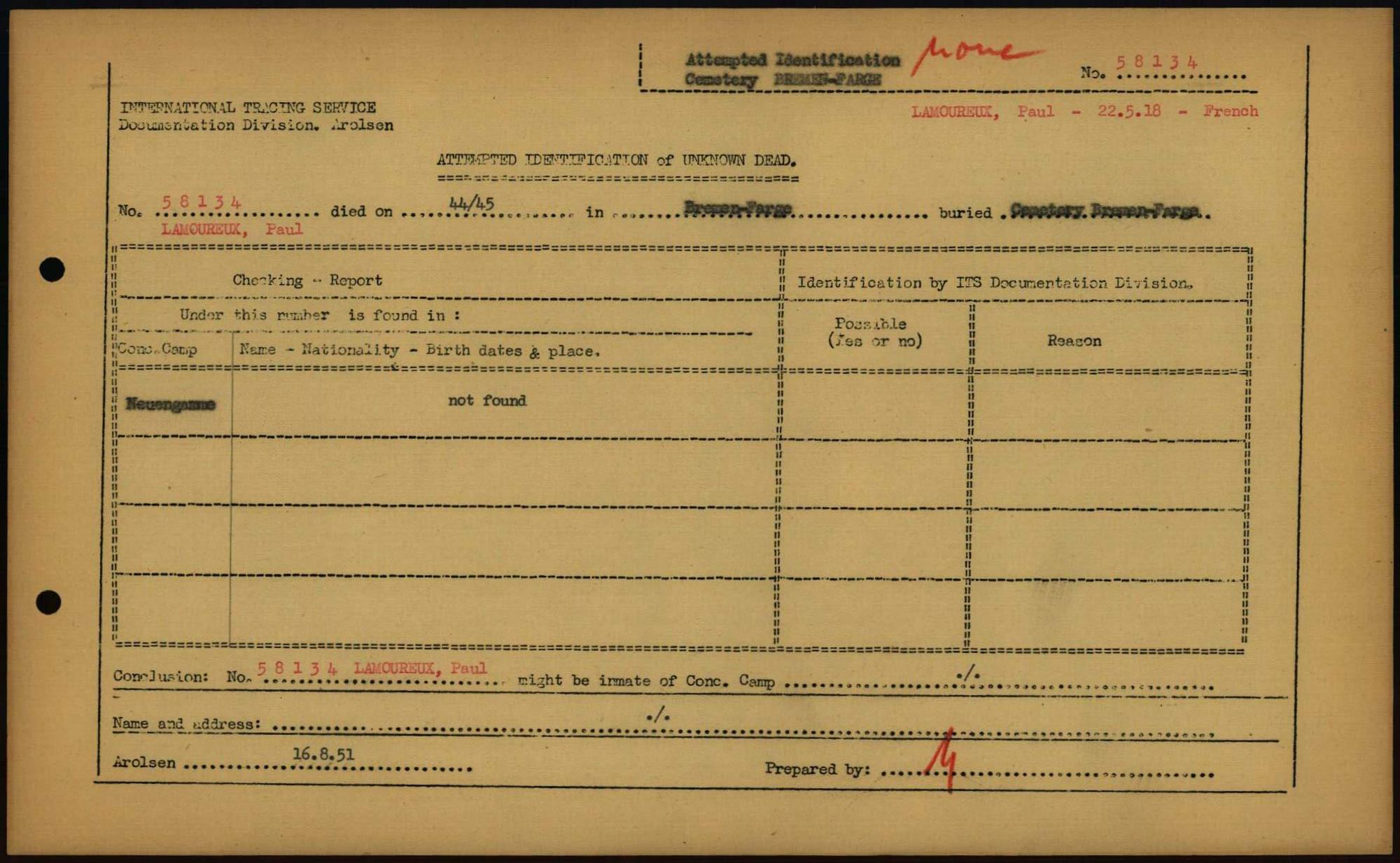 Einen Kommentar schreiben →Attempted Identification of Unknown Dead - Cemeteries: Ergebnisse der Identifizierung... 0226 (84613813)