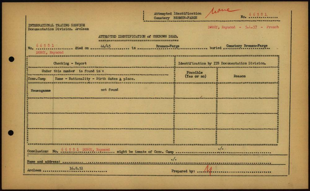 Einen Kommentar schreiben →Attempted Identification of Unknown Dead - Cemeteries: Ergebnisse der Identifizierung... 0260 (84613847)