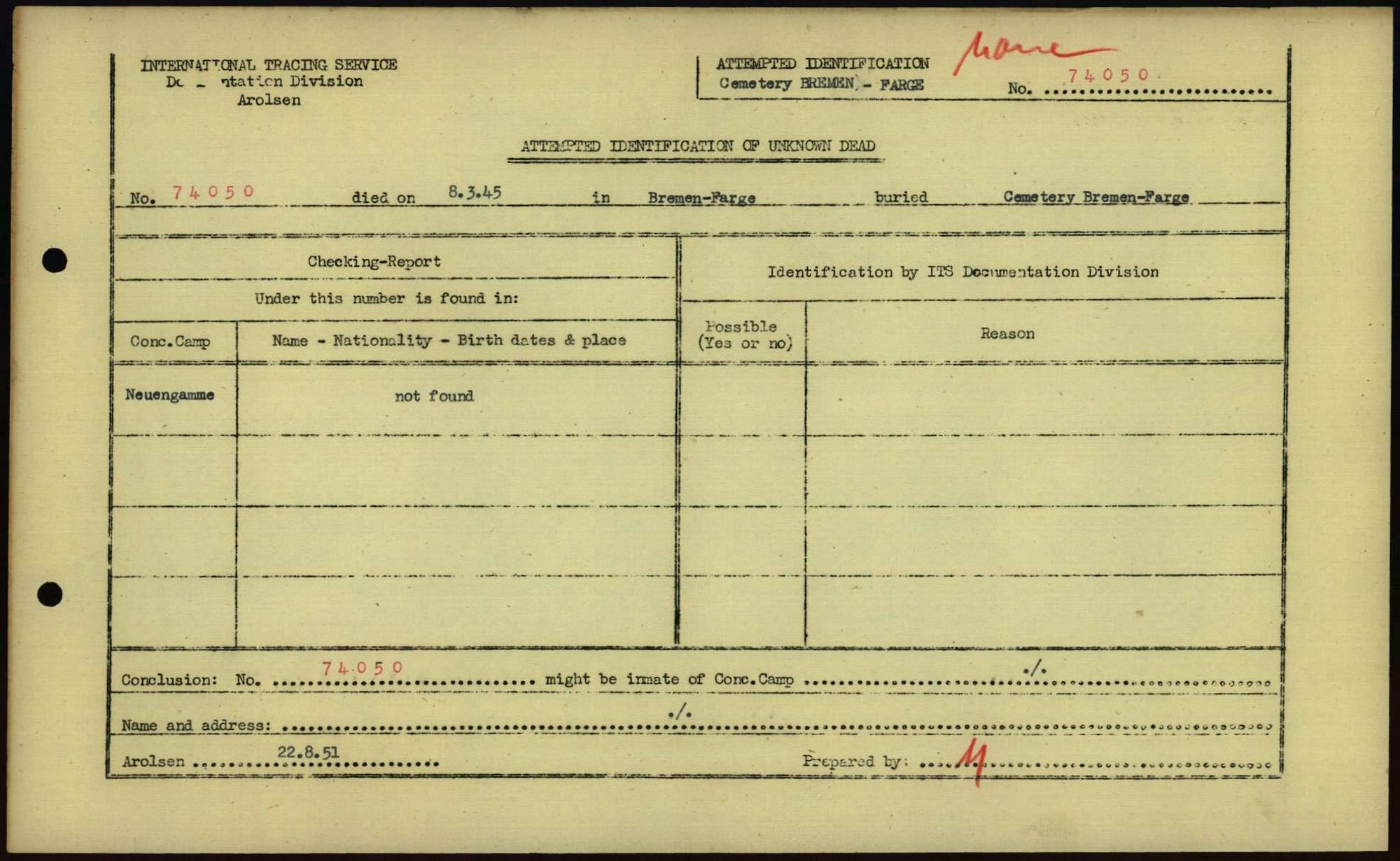 Einen Kommentar schreiben →Attempted Identification of Unknown Dead - Cemeteries: Ergebnisse der Identifizierung... 0270 (84613857)