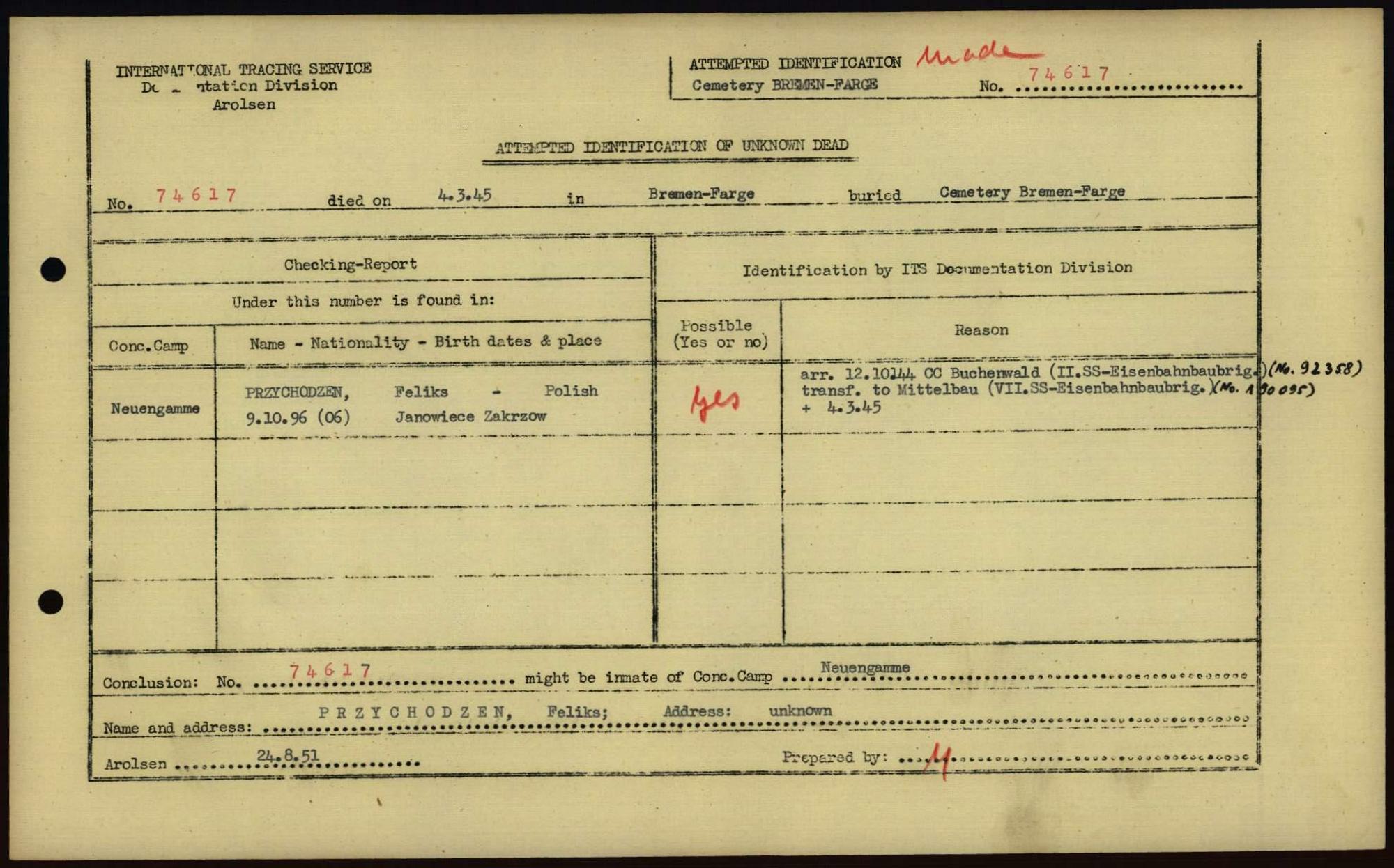 Einen Kommentar schreiben →Attempted Identification of Unknown Dead - Cemeteries: Ergebnisse der Identifizierung... 0289 (84613876)