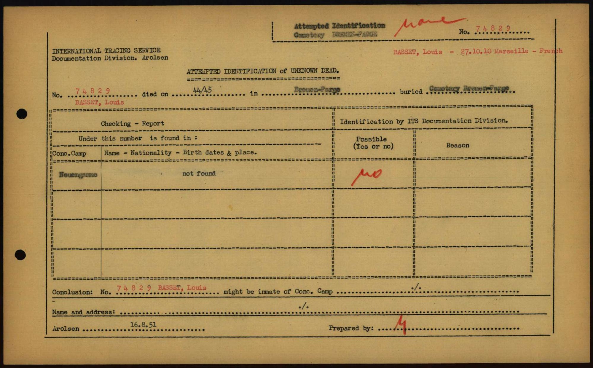 Einen Kommentar schreiben →Attempted Identification of Unknown Dead - Cemeteries: Ergebnisse der Identifizierung... 0295 (84613882)
