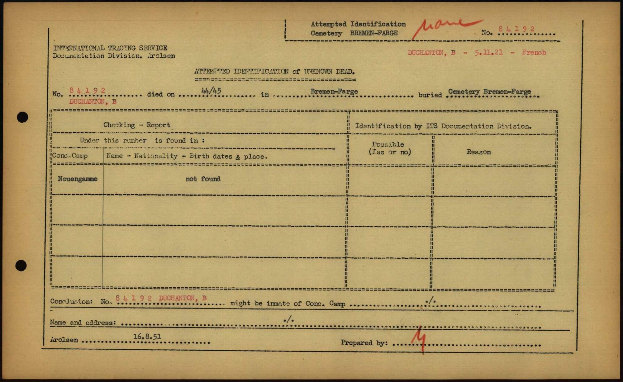 Einen Kommentar schreiben →Attempted Identification of Unknown Dead - Cemeteries: Ergebnisse der Identifizierung... 0317 (84613904)