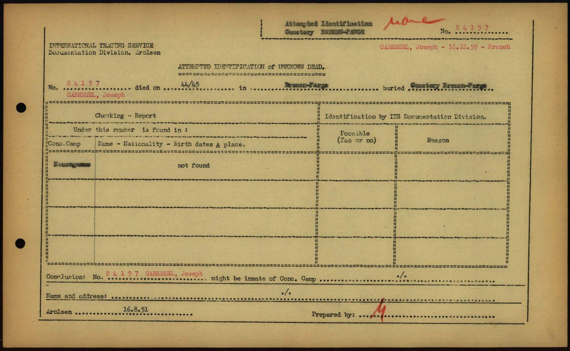 Einen Kommentar schreiben →Attempted Identification of Unknown Dead - Cemeteries: Ergebnisse der Identifizierung... 0318 (84613905)