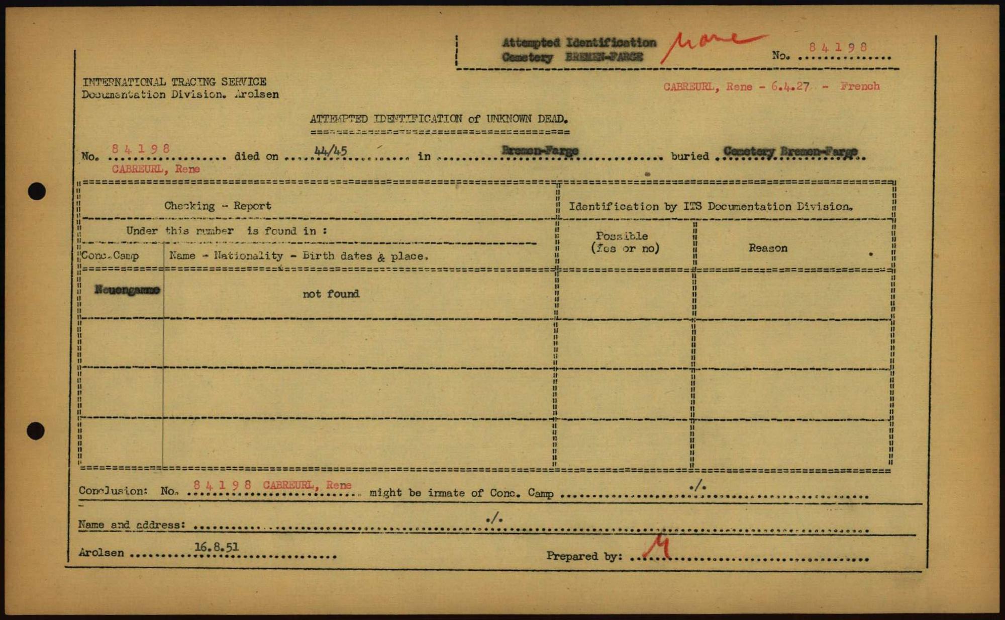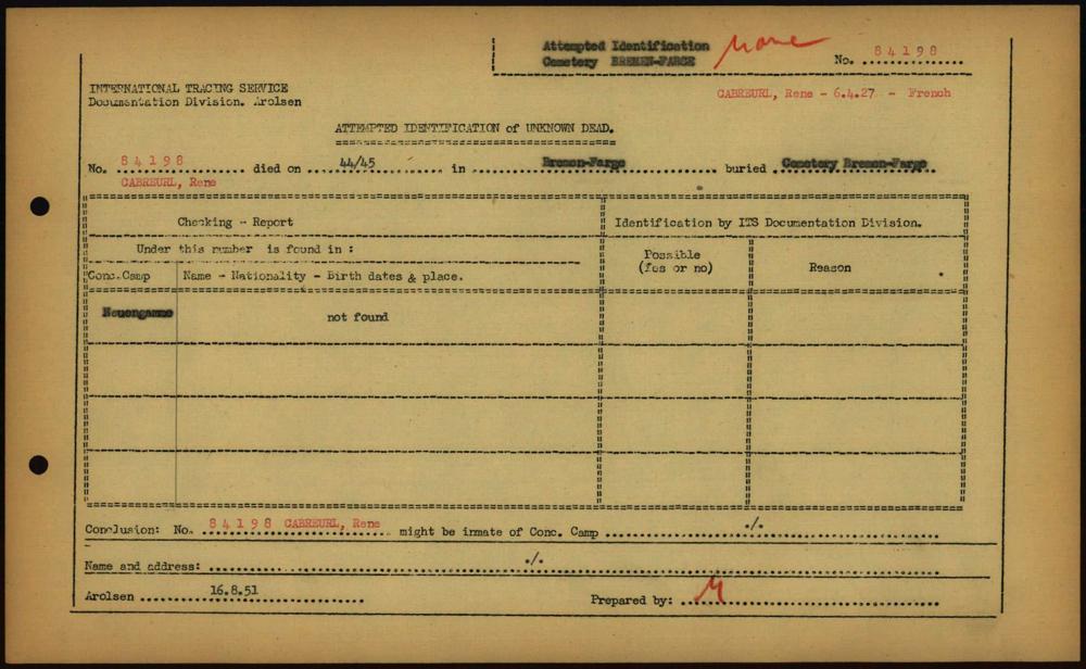 Einen Kommentar schreiben →Attempted Identification of Unknown Dead - Cemeteries: Ergebnisse der Identifizierung... 0319 (84613906)