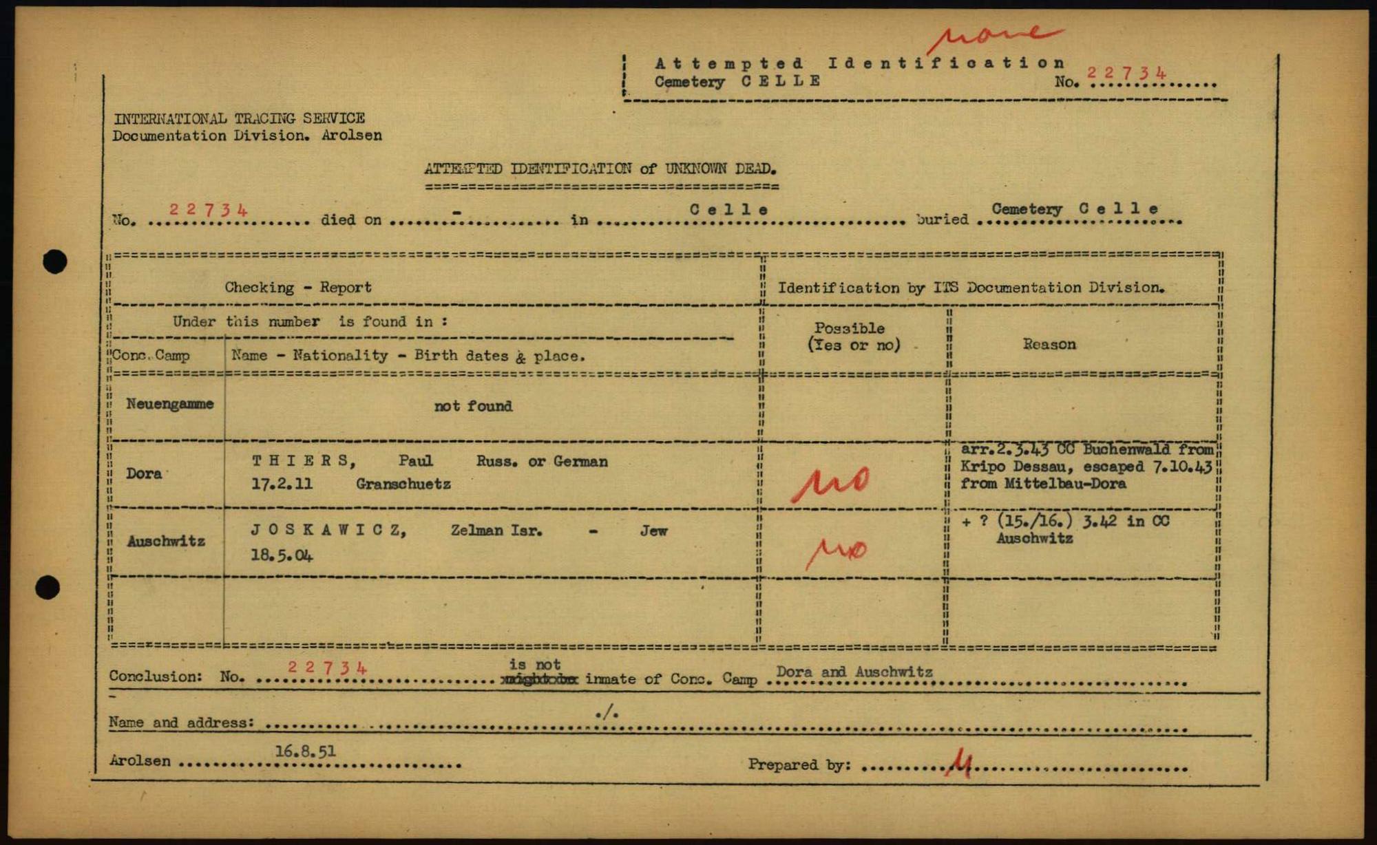 Einen Kommentar schreiben →Attempted Identification of Unknown Dead - Cemeteries: Ergebnisse der Identifizierung... 0067 (84614013)