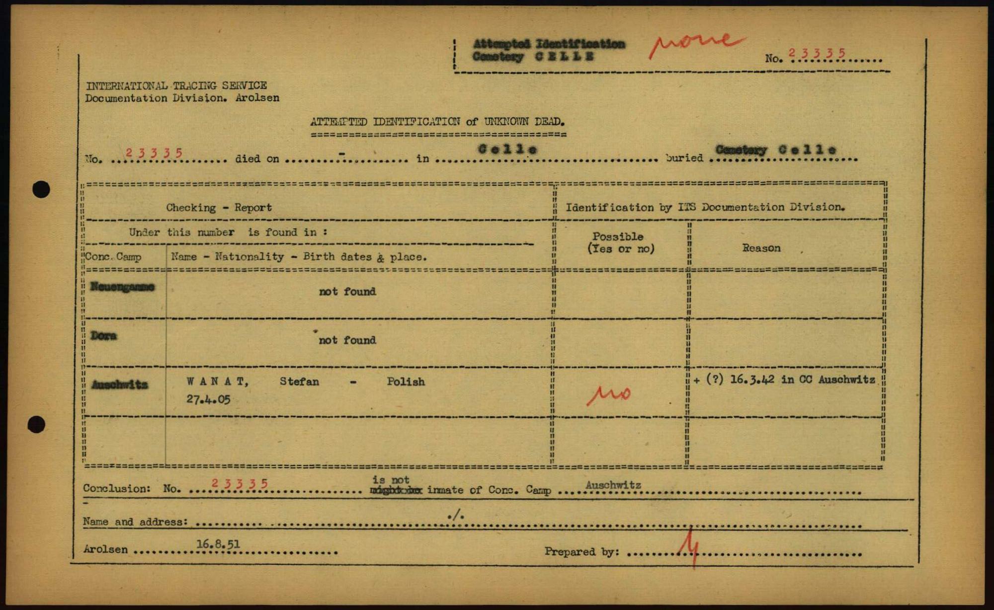 Einen Kommentar schreiben →Attempted Identification of Unknown Dead - Cemeteries: Ergebnisse der Identifizierung... 0072 (84614018)