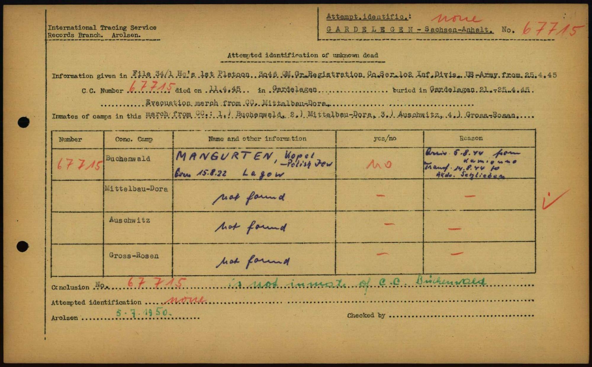 Einen Kommentar schreiben →Attempted Identification of Unknown Dead - Cemeteries: Ergebnisse der Identifizierung... 0325 (84614964)