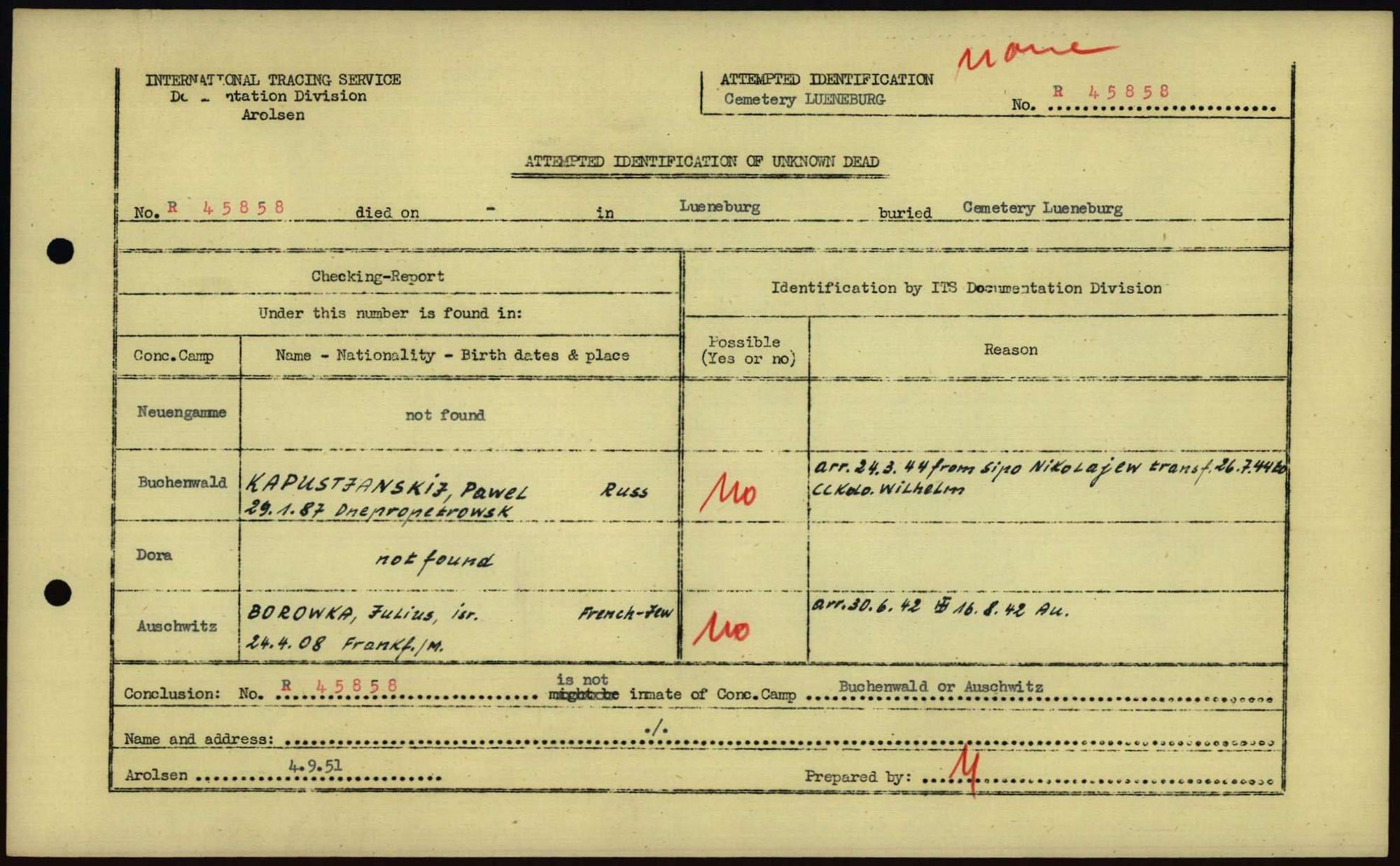 Einen Kommentar schreiben →Attempted Identification of Unknown Dead - Cemeteries: Ergebnisse der Identifizierung... 0042 (84615548)
