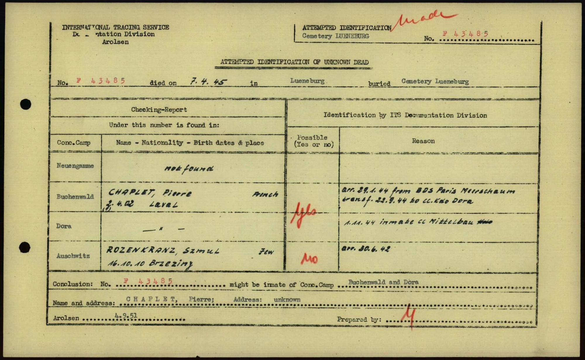 Einen Kommentar schreiben →Attempted Identification of Unknown Dead - Cemeteries: Ergebnisse der Identifizierung... 0053 (84615559)