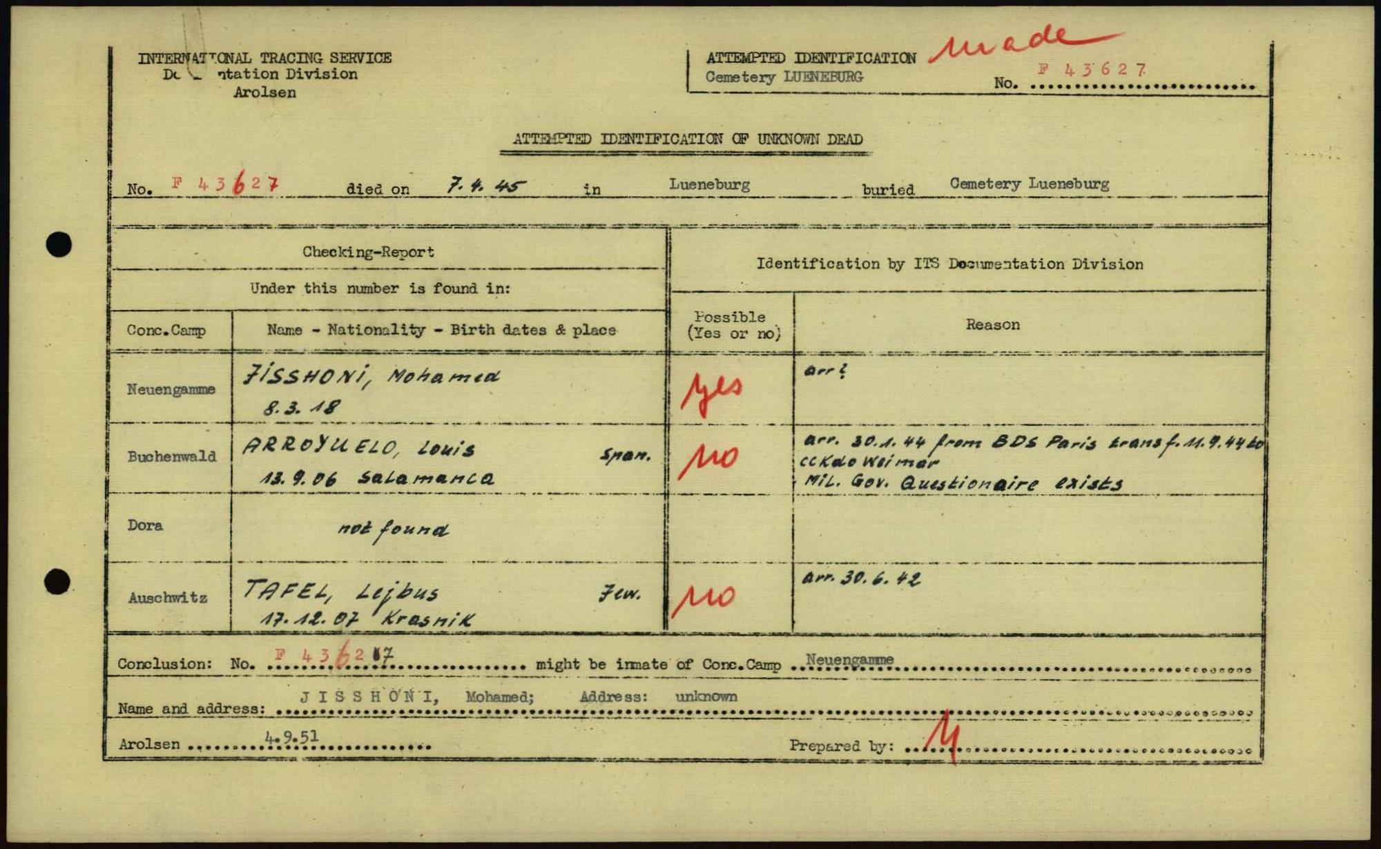 Einen Kommentar schreiben →Attempted Identification of Unknown Dead - Cemeteries: Ergebnisse der Identifizierung... 0065 (84615571)