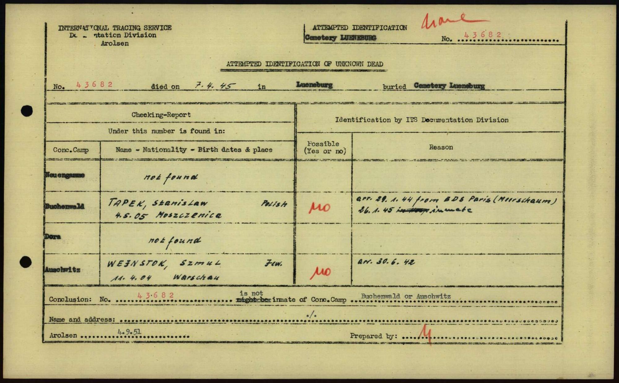 Einen Kommentar schreiben →Attempted Identification of Unknown Dead - Cemeteries: Ergebnisse der Identifizierung... 0071 (84615577)