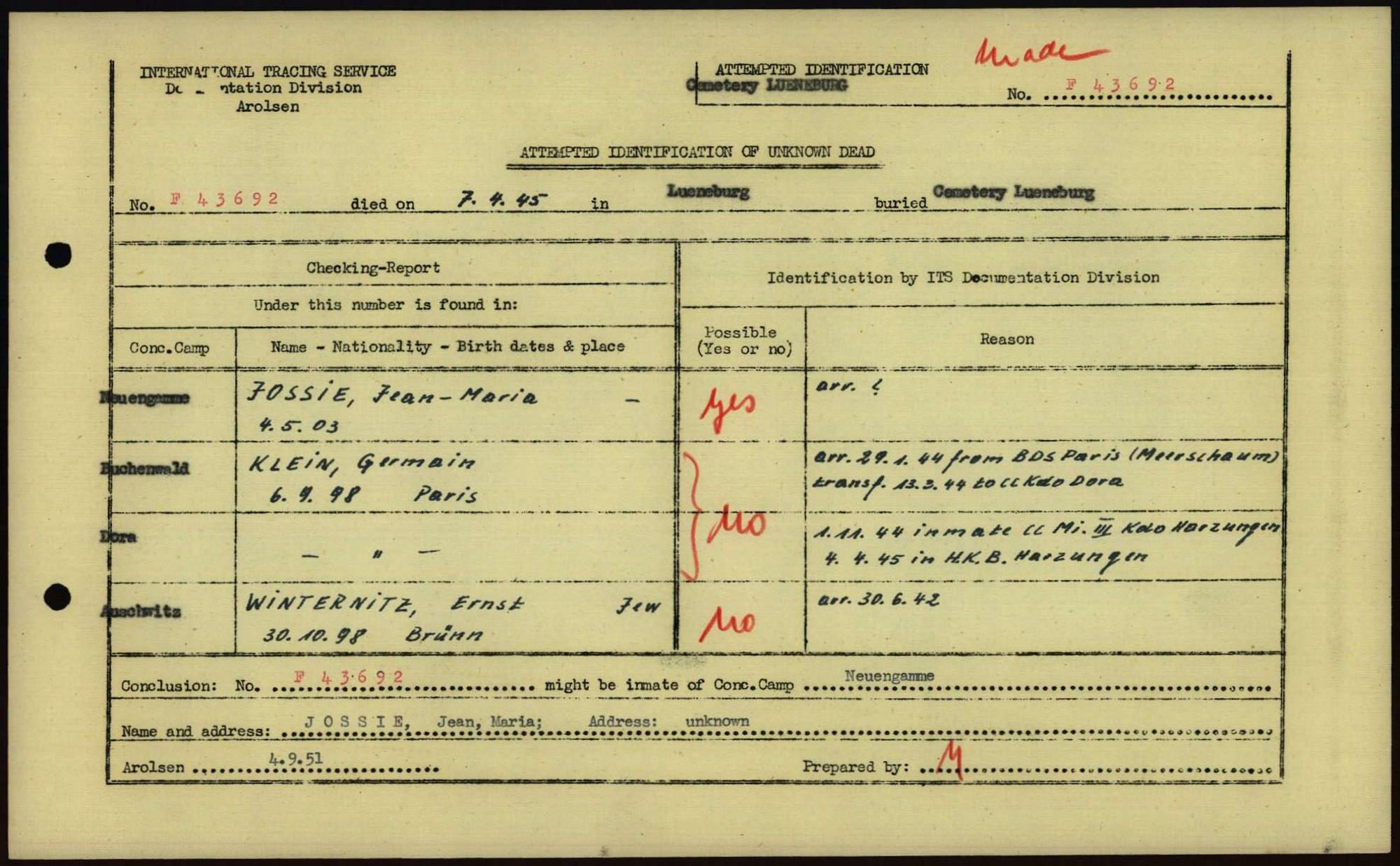 Einen Kommentar schreiben →Attempted Identification of Unknown Dead - Cemeteries: Ergebnisse der Identifizierung... 0072 (84615578)