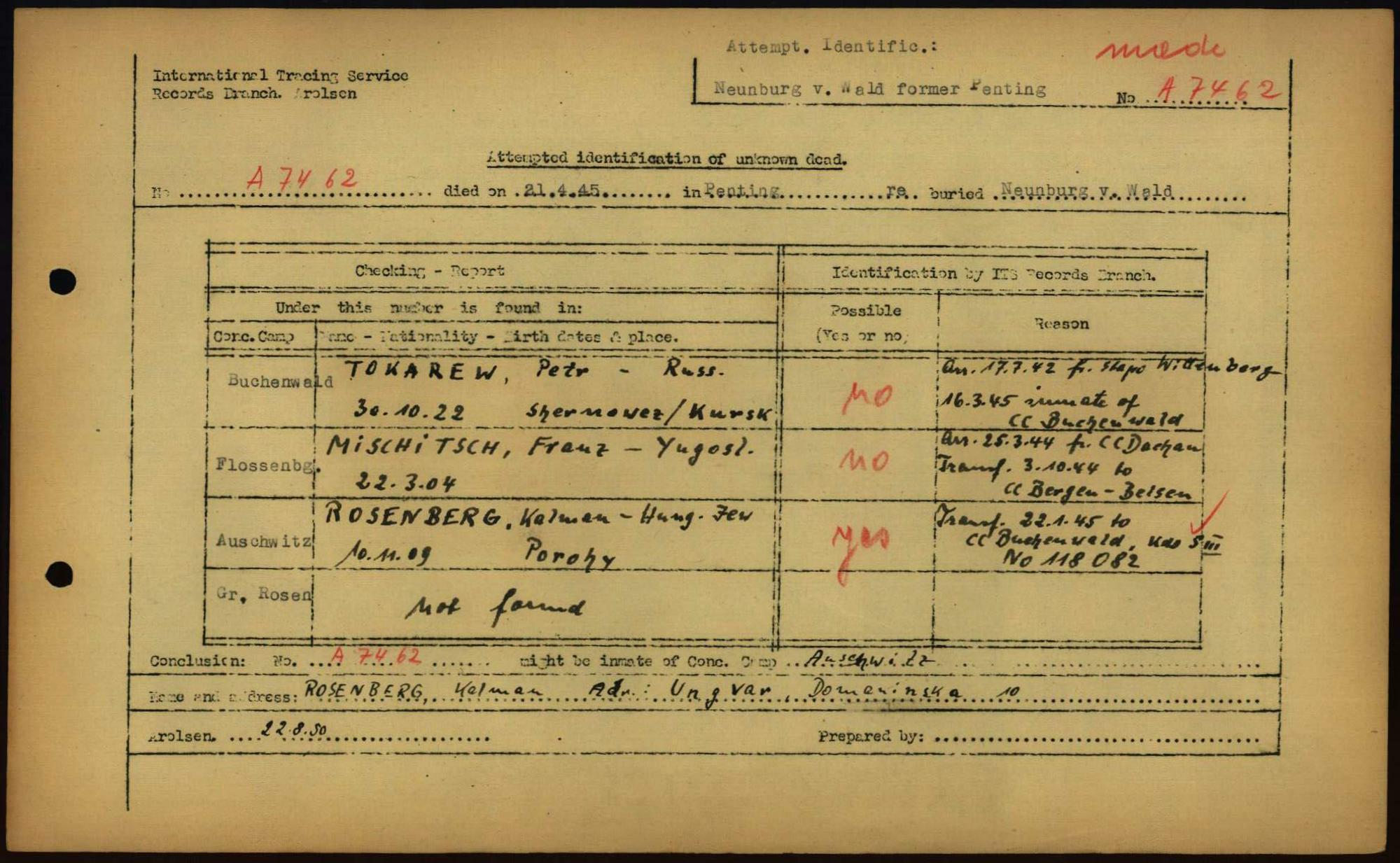 Einen Kommentar schreiben →Attempted Identification of Unknown Dead - Cemeteries: Ergebnisse der Identifizierung... 0063 (84615984)