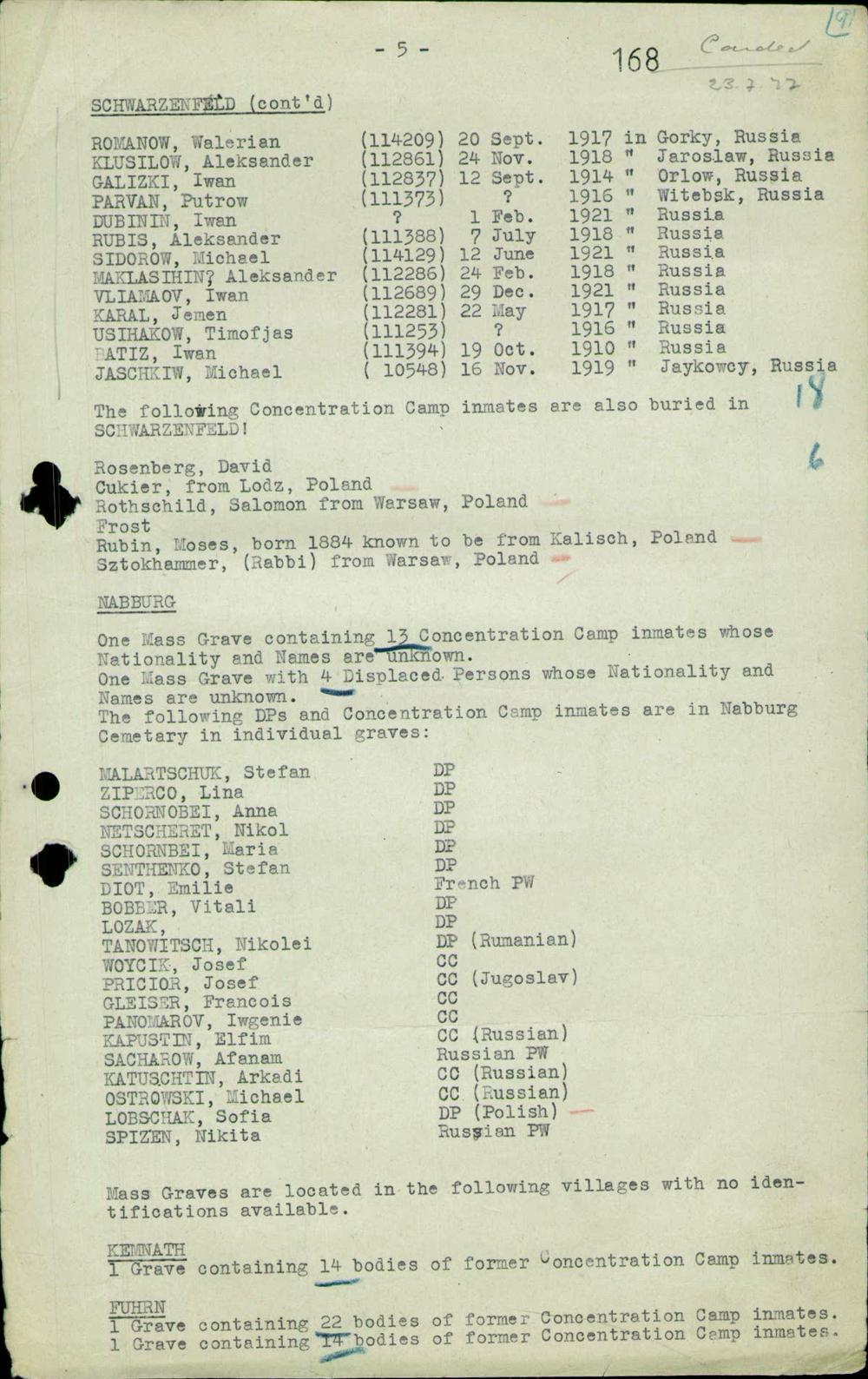 Einen Kommentar schreiben →Ergebnisse der Ermittlungen nach Gräbern unbekannter Ausländer und Konzentrationslager-Häftlinge... 0169 (84606933)