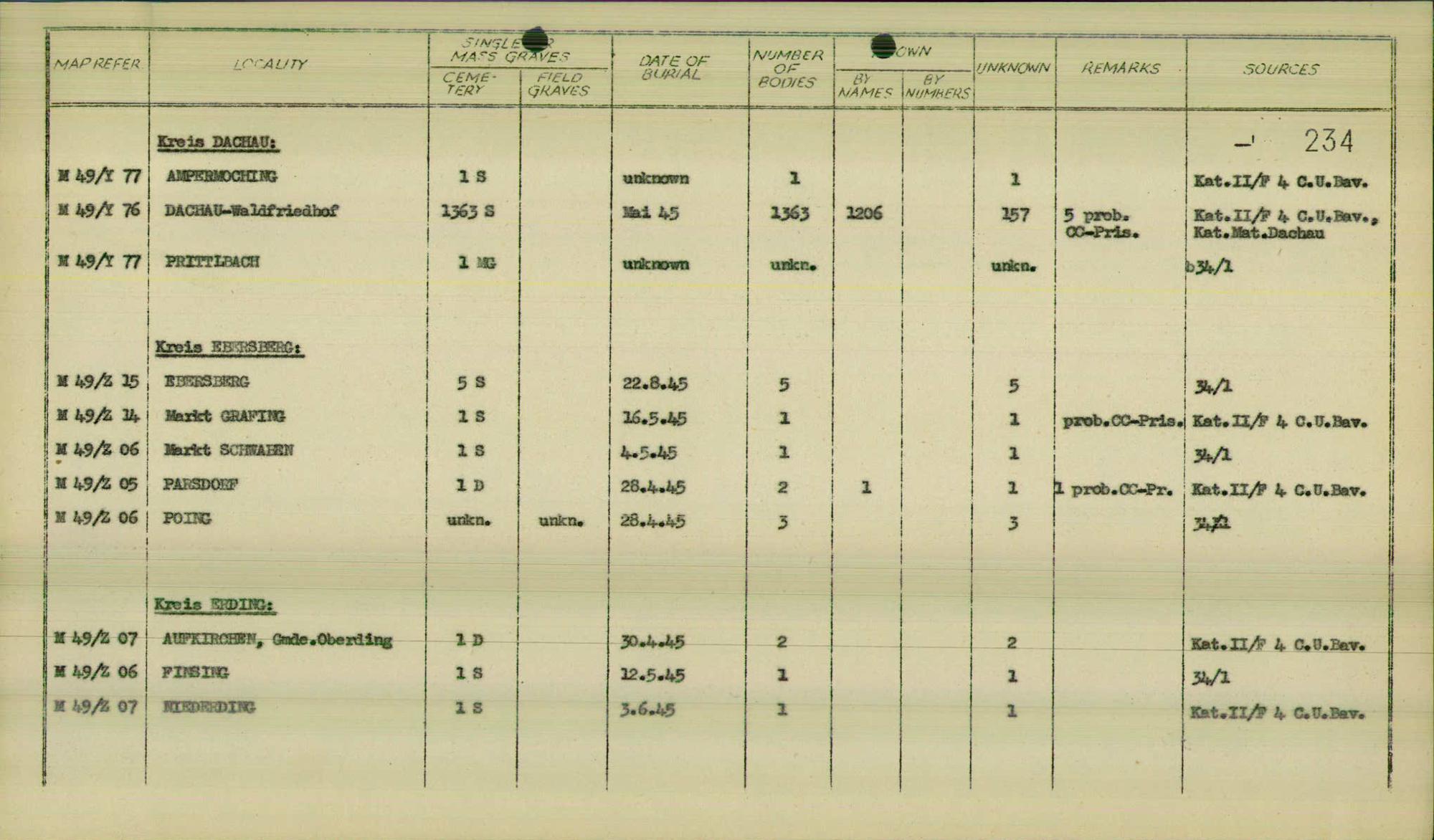 Einen Kommentar schreiben →Ergebnisse der Gräberermittlung für die einzelnen betroffenen Gemeinden. 0234 (84611901)