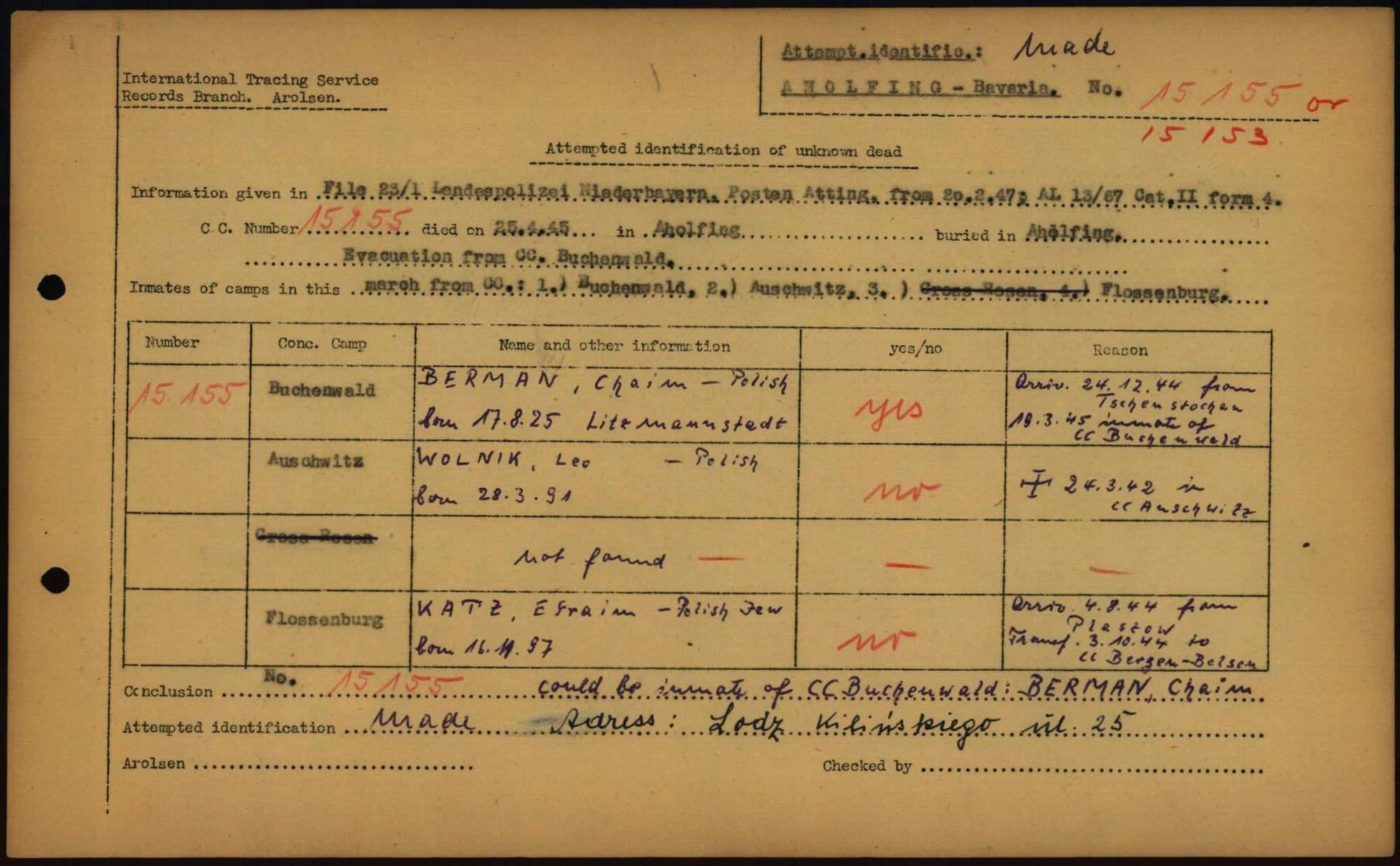 Einen Kommentar schreiben →Attempted Identification of Unknown Dead - Cemeteries: Ergebnisse der Identifizierung... 0006 (84612759)