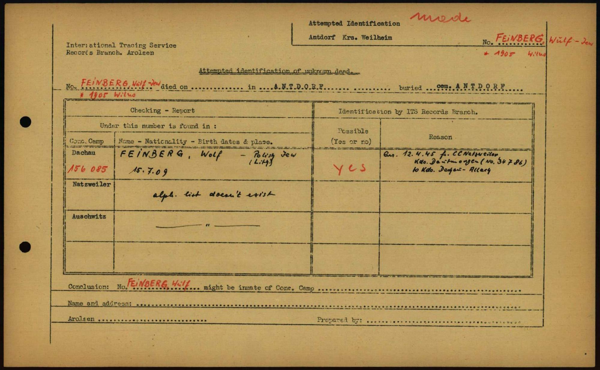 Einen Kommentar schreiben →Attempted Identification of Unknown Dead - Cemeteries: Ergebnisse der Identifizierung... 0006 (84612788)