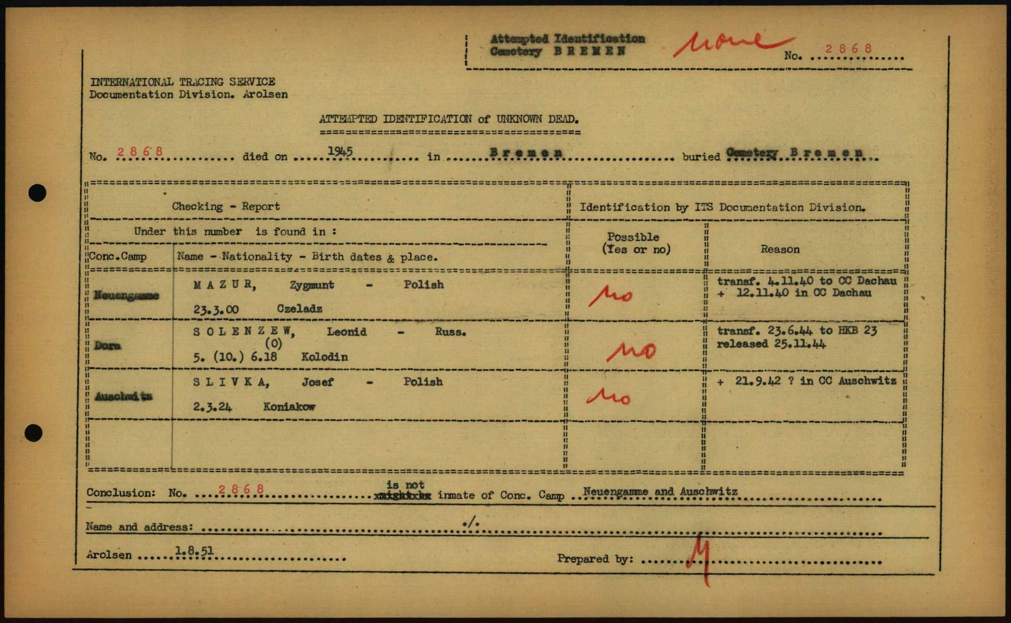 Einen Kommentar schreiben →Attempted Identification of Unknown Dead - Cemeteries: Ergebnisse der Identifizierung... 0030 (84613030)